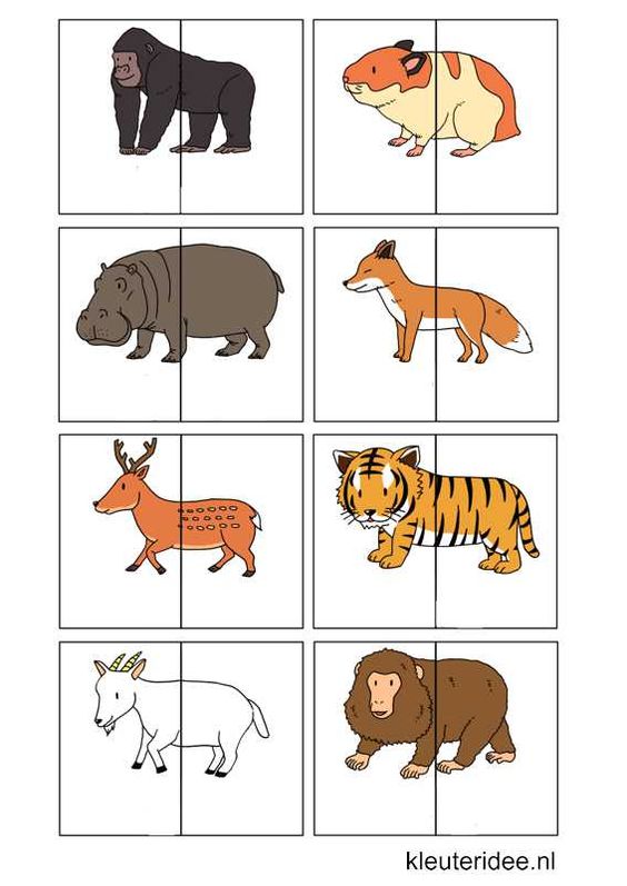 Print het bald uit en knip de puzzel in stukjes. Laat je kleuter nu het juiste hoofd bij het juiste lijfje plakken, Kan je de dieren ook benoemen?